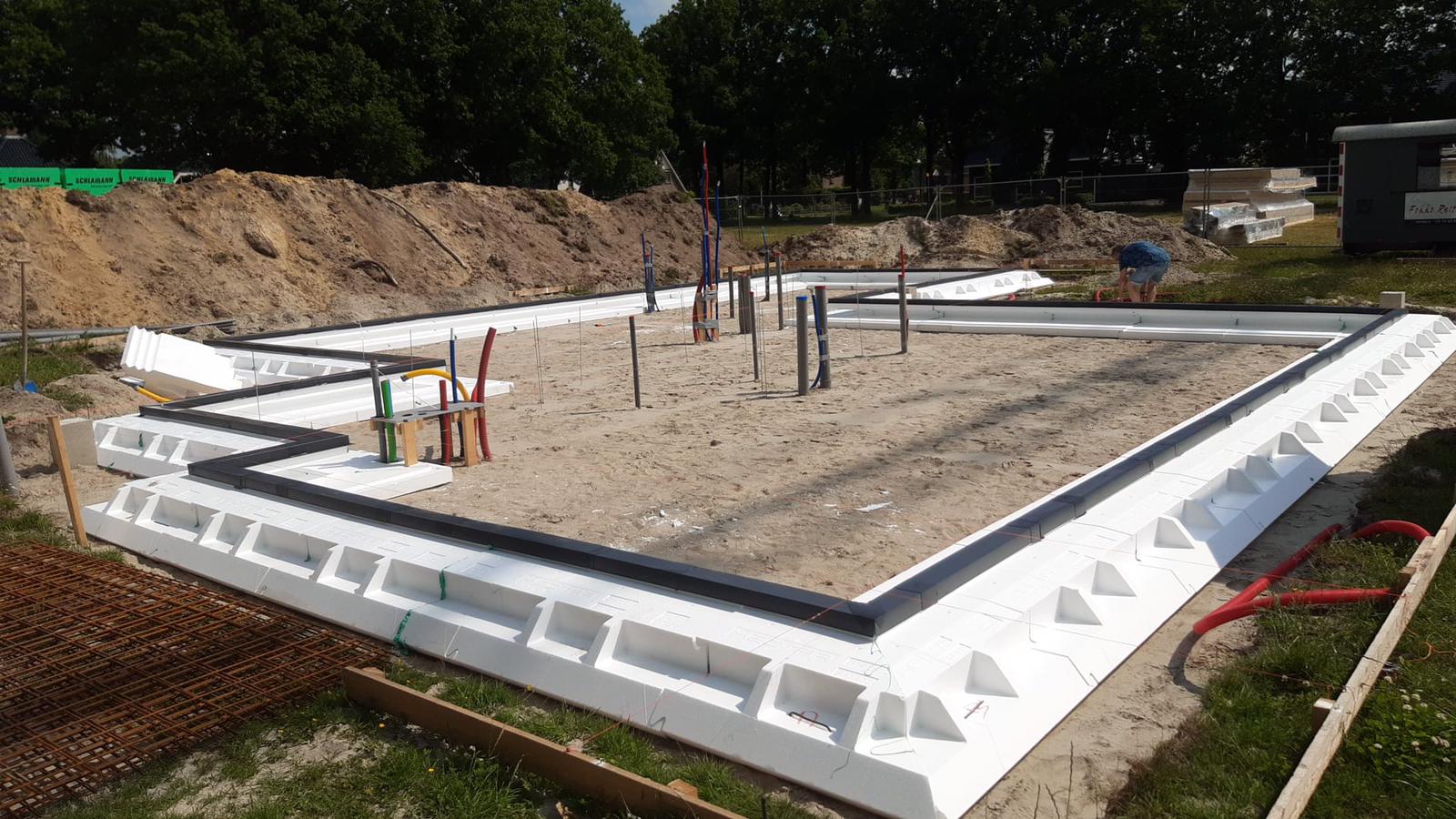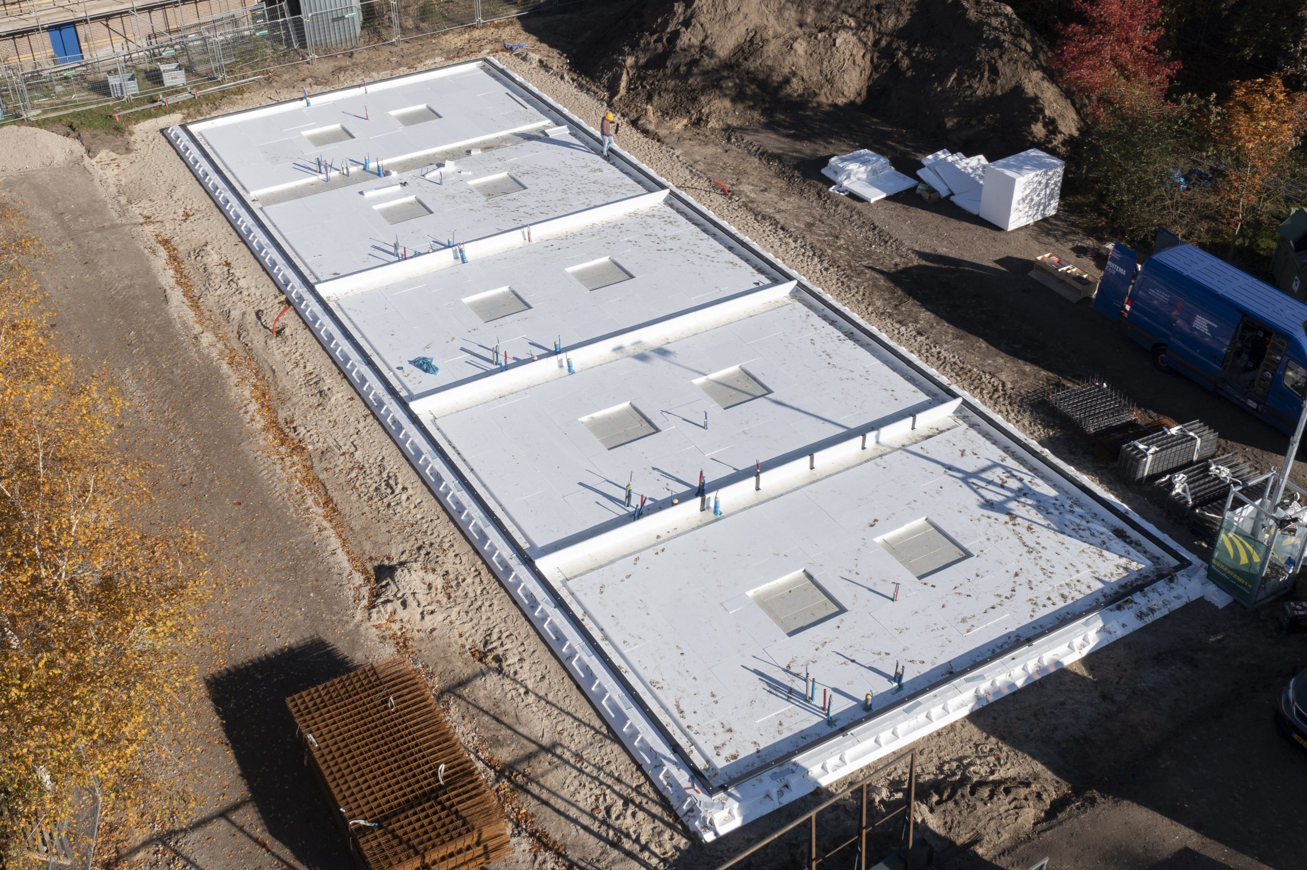 De innovatieve funderingsvloer kenmerkt zich door zijn horizontale vorstrand. De vorstvrije aanleg van de fundering wordt gecreëerd door vanaf maaiveld minimaal 40 cm verticaal en 40 cm horizontaal af te leggen tot het beton.