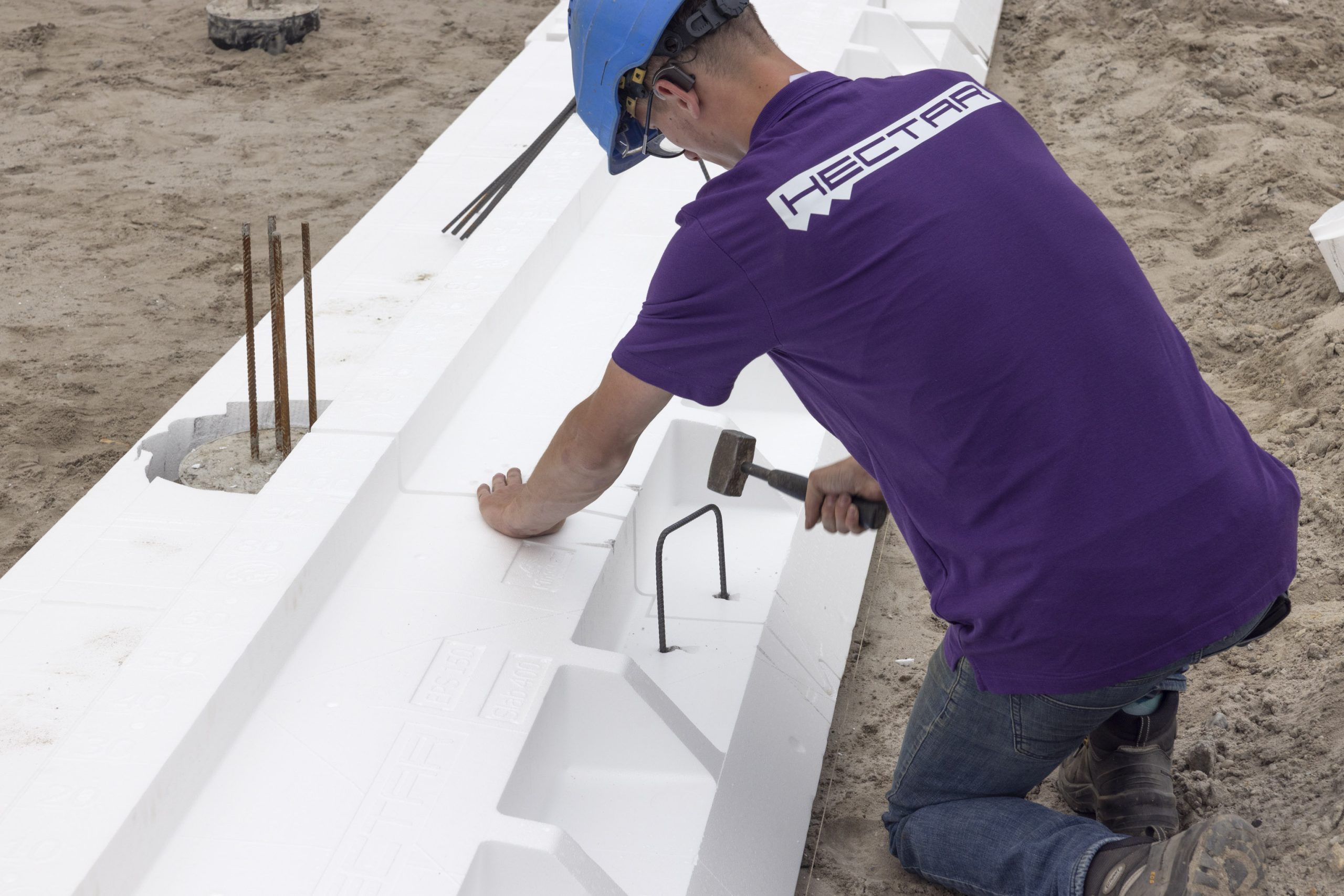 De Hectar funderingsvloer heeft geen kruipruimte en bestaat uit eenvoudig te installeren EPS-randkisten en EPS-vloerplaten die worden afgestort met (staalvezel)betonmortel. De Hectar funderingsvloer is ingepakt in EPS en door zijn unieke ontwerp geheel koudebrugvrij.
