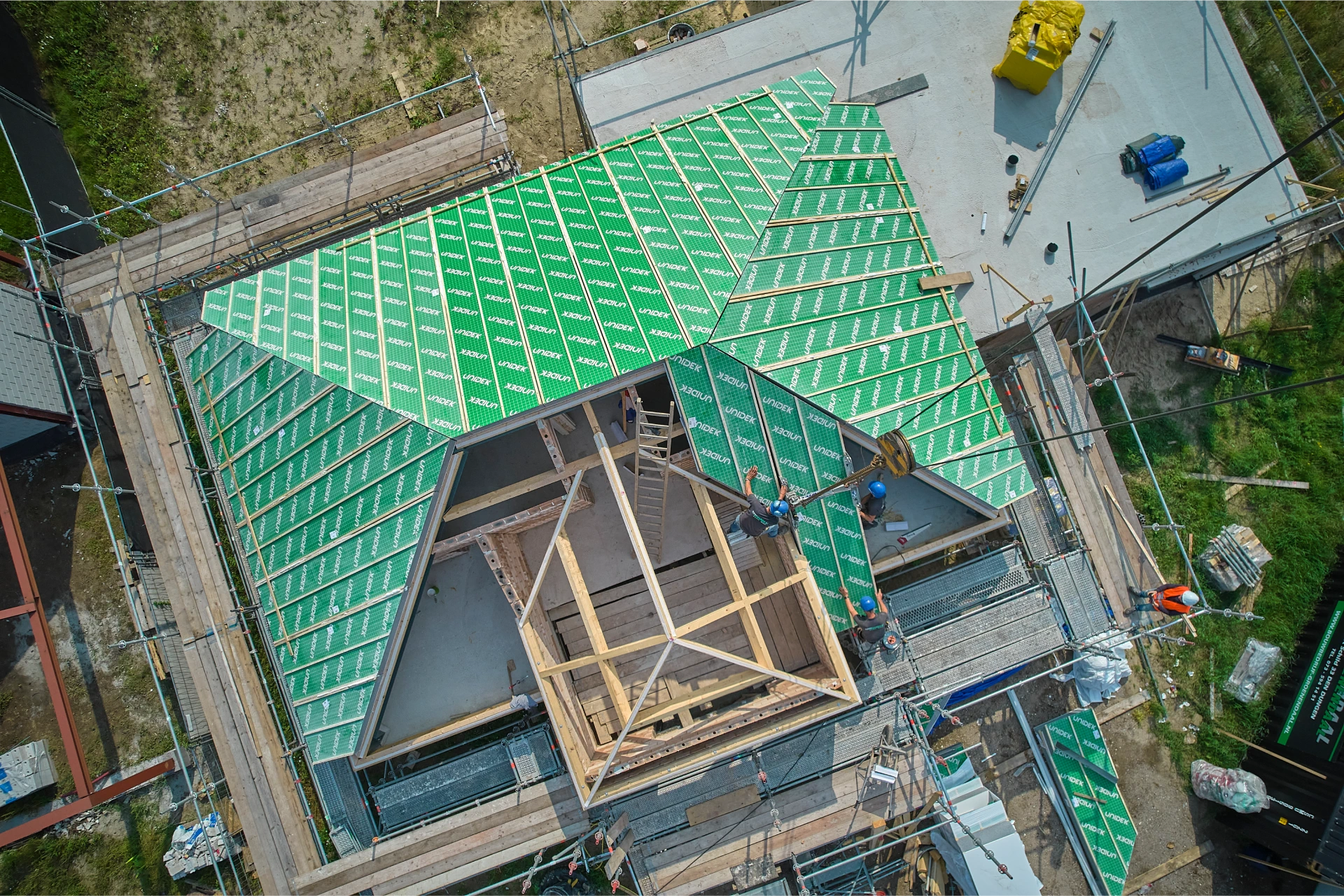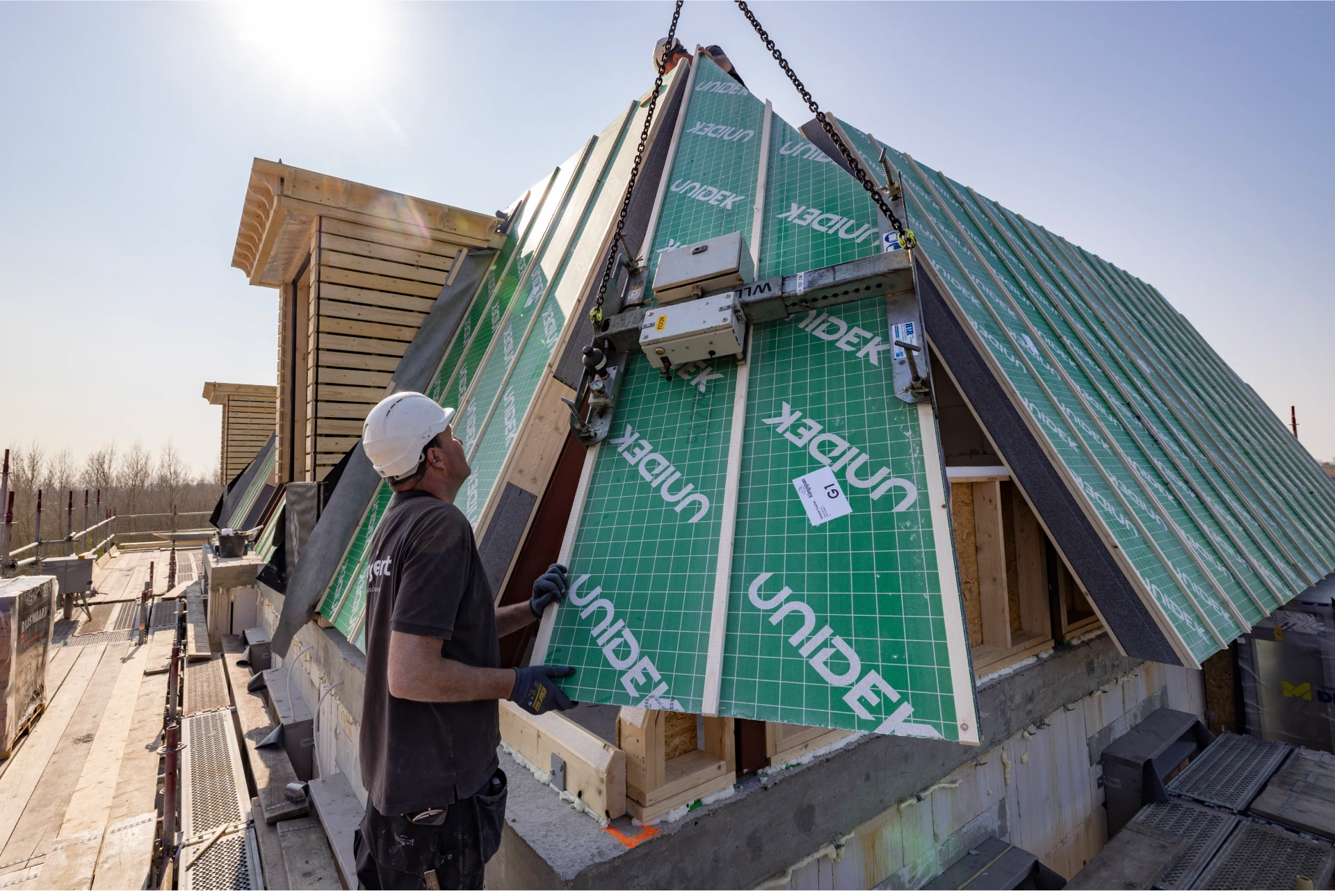 Een dak met hoek- en kilkepers is een flinke klus. Al dat zagen kost extra mankracht en kraantijd en geeft bovendien veel afval. Dat kan echt veel sneller en beter! Daarom biedt Kingspan Unidek de Unidek PasDak service aan.
