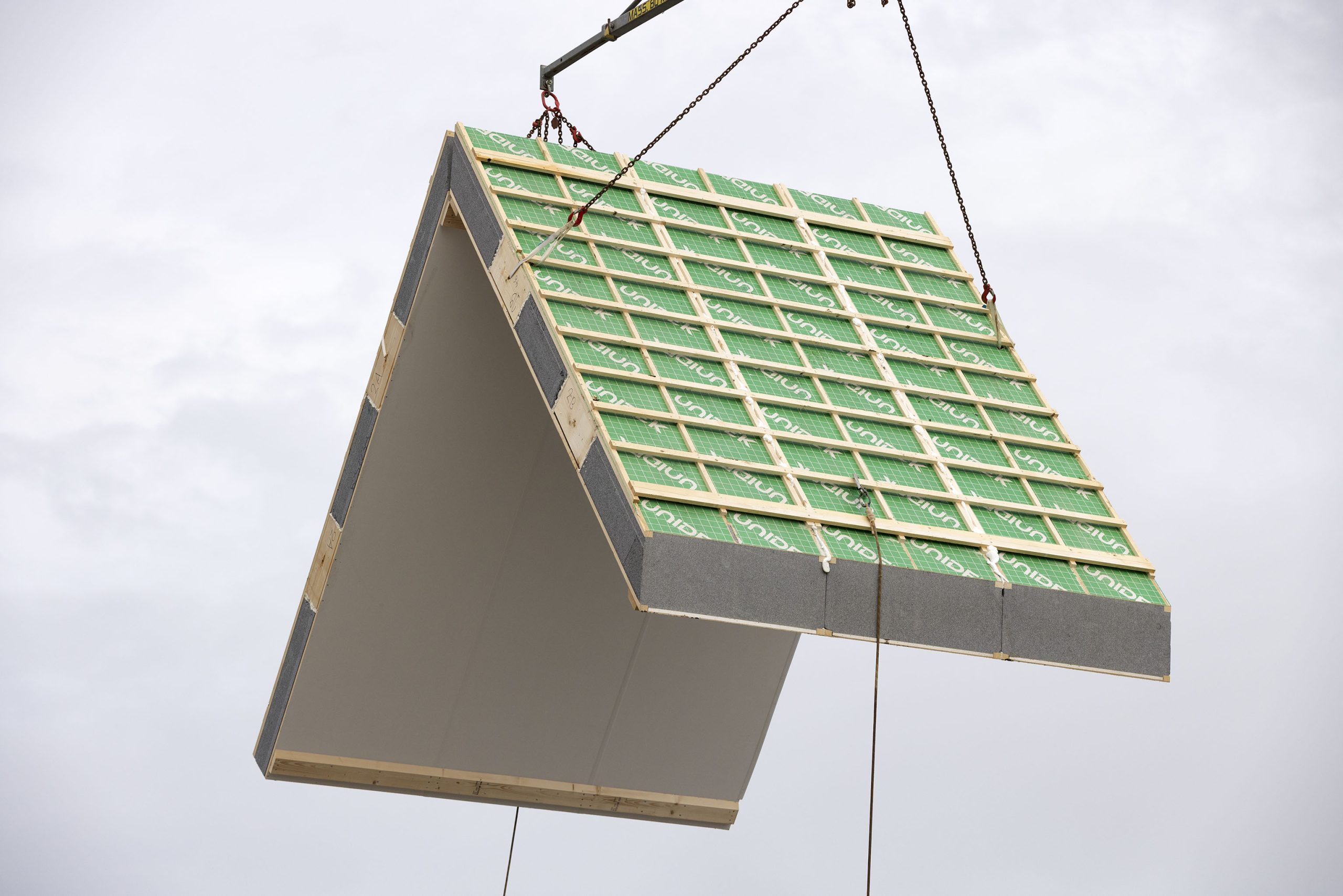 Als prefab toeleverancier bieden we Unidek Aero basispanelen aan als halffabricaat, die verwerkt kunnen worden tot een volwaardige prefab dakoplossing als eindproduct. Het grote voordeel van prefab daken is dat de kans op uitvoeringsfouten klein is en de industriƫle verwerker in korte tijd een prefab scharnierdak kan produceren met een minimale hoeveelheid zaagwerk en afval op de bouwplaats.